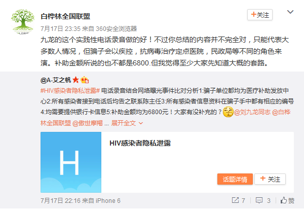 电话交流中,艾滋病感染者们发现诈骗者事先已掌握他们的个人信息,包括真实姓名、身份证号、联系方式、户籍信息、确诊时间、随访的医院或区县疾控等等。