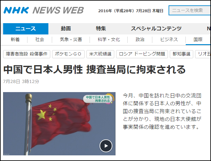 据日本NHK电视台报道,据消息人士透露,本月中旬中方向北京的日本大使馆通报了“该男子已被捕”的消息。日本大使馆方面目前正在确认事情经过。