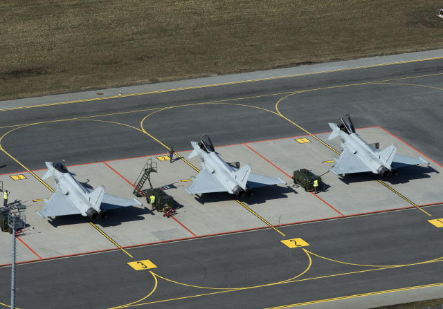 驻扎在爱沙尼亚阿玛瑞空军基地(Amari Air Base)的英国皇家空军台风战斗机