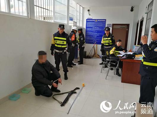 人民网昆明2月13日电记者日前从云南省建水县公安局交警大队获悉,2月11日上午,当地交警在城区道路开展路检路查中,对一辆绿色全封闭小货车进行检查,该车驾驶员以自己驾驶的是运钞车为由,拒绝向交警出示相关证件,还竟然从一旁拿起放在车上的防暴枪指向执勤交警。
