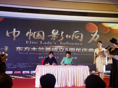 同时,东方木兰荟还在庆典和颁奖晚会现场启动了“木兰巾帼”联盟签约。与(乡村.中国梦)爱心公益组织签约牵手支持英才成长心爱素拓计划;与全国妇联、中非大使联合会、安顺西秀区妇联签约“木兰锦绣计划”;与内蒙古分会、中阿食品工业园项目签约。