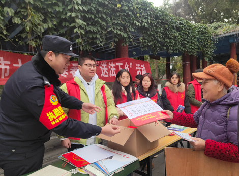 中经联播讯(通讯员 向帮国 刘亚平 刘永)1月28日,怀化铁路公安处吉首站派出所联合吉首市司法局,在吉首市峒河公园开展宣传活动,为辖区群众送上“法治年货”。