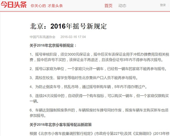 2月17日上午,一则《北京:2016年摇号新规定》的报道在网上流传,“连续24次没摇中自动获得一个购车指标”、“已有车的家庭不能再参与摇号”、“临时性北京集体户口人员不能再参与摇号”等新规定再次触动无数久摇不中人们的敏感神经。