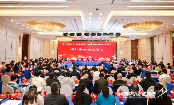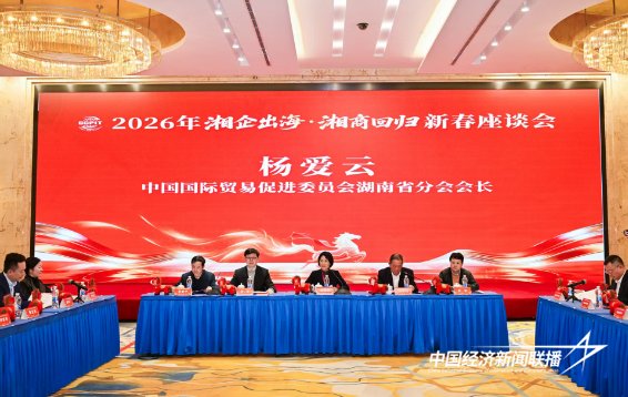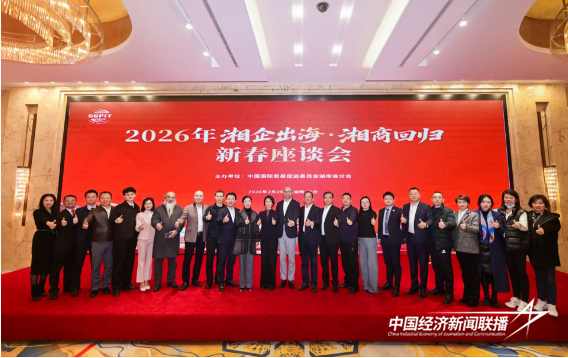 中经联播长沙讯(李建秋)2月28日,由湖南省贸促会主办的2026年“湘企出海、湘商回归”新春座谈会在长沙华天大酒店圆满举行。120余家“走出去”企业代表、31家境外湖南商协会负责人齐聚一堂,围绕湘企出海路径探索、湘商回归赋能家乡发展、产业协同共赢等核心议题展开深度交流,共绘湖南经济国际化发展蓝图。