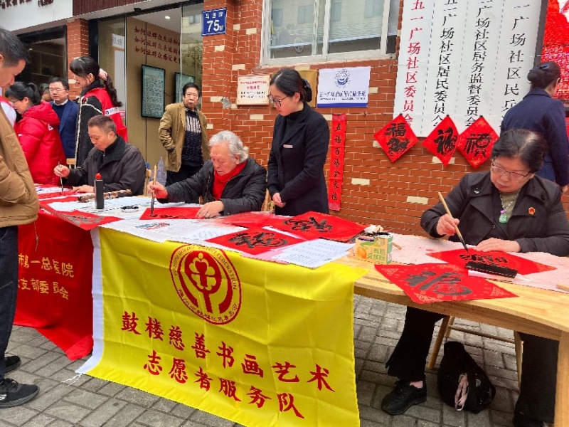 活动现场暖意融融,年味愈发醇厚。鼓楼慈善书画艺术志愿者服务队的书法家们端坐案前,笔酣墨饱,挥毫泼墨间,一幅幅寓意吉祥的春联、一个个遒劲有力的“福”字跃然纸上。“策马奔腾开盛景,春风浩荡展宏图”“福满乾坤家兴旺,春回大地业兴隆”,红底黑字的春联承载着对马年的美好期许,墨香氤氲中,居民们有序排队、按需点题,手捧刚出炉的新春佳作,脸上漾起藏不住的幸福笑意。