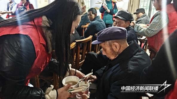 志愿者们到敬老院便忙碌起来。厨房里,大家围在灶台前煮汤圆,不一会儿,热气腾腾的汤圆便出锅了。志愿者们将一碗碗香甜软糯的汤圆端到老人手中,陪他们边吃边聊。