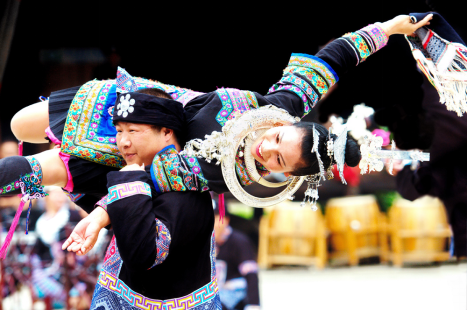 “行歌坐夜”,是侗族青年男女自由社交和恋爱的主要方式。待月光皎洁,古寨灯火阑珊时,古寨的广场上会上演现代版的“行歌坐夜”表演,所有人在“摇哎nia”的情歌中感受侗族“行歌坐夜”的情爱场景,一起体验浓浓爱意,情歌对唱、爬窗探妹、抢姑娘、抢板凳、体验侗族新郎待遇……