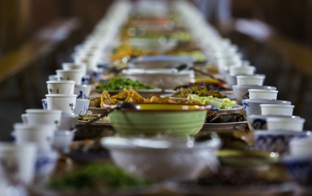 各色侗族美食一一摆满长桌。用餐前,先要“转转酒”,热情友好的气氛一下被渲染开来,大家吃着喝着唱着笑着,享受侗餐的美味和侗家人的热情!