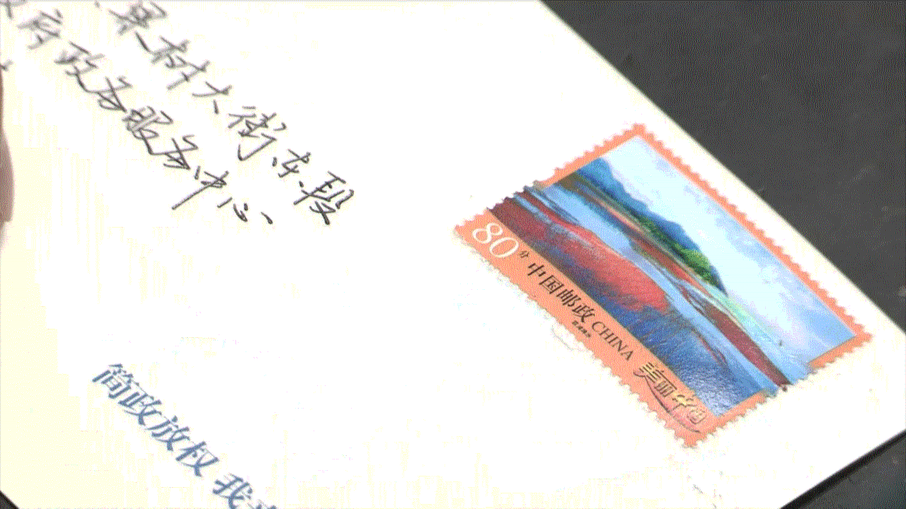 (中南海邮局工作人员正在给寄往各地的明信片盖邮戳)