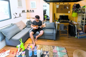 今年6月从广州某高校毕业的怪兽(昵称)最近住进了这家青年公寓,在他不过20多平方米的小复式房内,他把房间布置得十分别致。“房租2000多元,可能比同地段同类型的房子贵10%左右,但这里太好玩了。”怪兽告诉记者,在这里能够接触到各行各业有意思的人,设计师、创业者、玩音乐的,还有做直播的网红等。此外,这里还可以随心所欲地涂鸦布置房间,“即使搬走也无须把房间还原。”