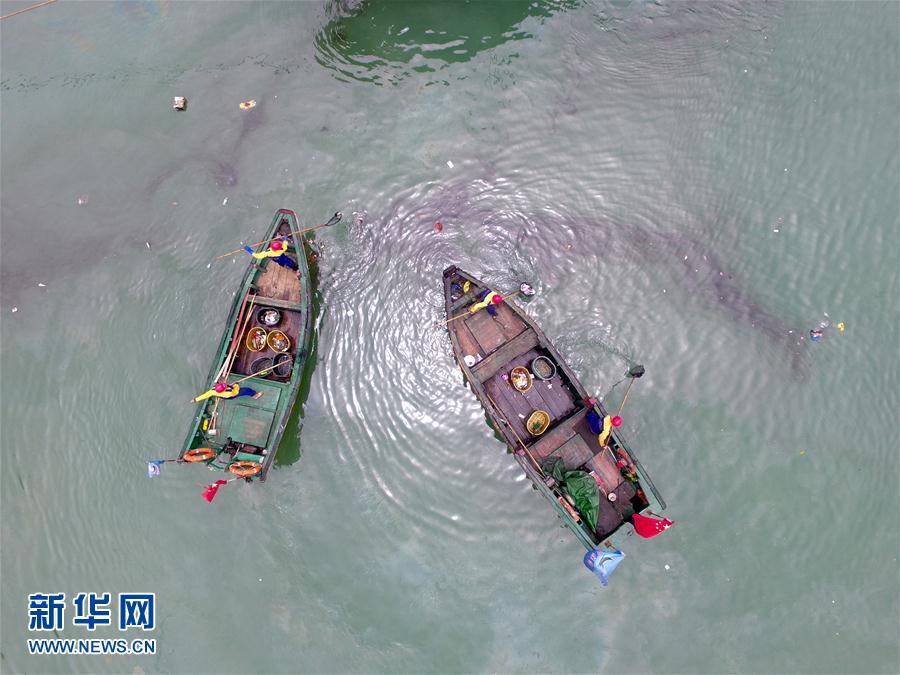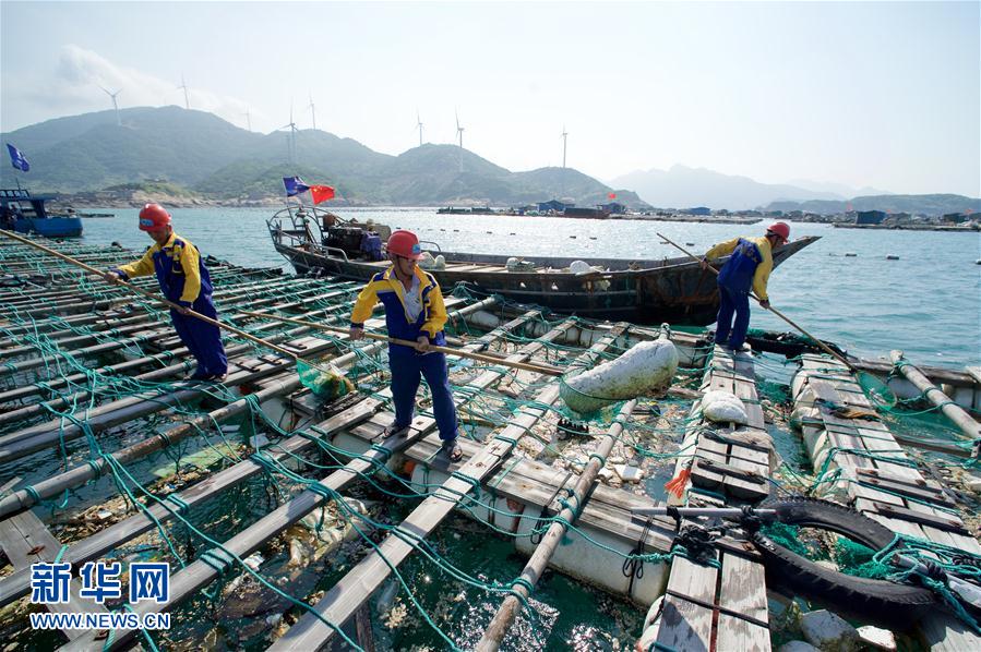 6月6日,福建省连江县黄岐镇海上环卫工人在黄岐国家中心渔港内清理海漂垃圾。福建省连江县黄岐镇是重点渔业养殖区,2017年1月以来,针对海漂垃圾日益泛滥的现象,该镇引入了专业的市场化保洁队伍对中心渔港及周边渔业养殖区进行海漂垃圾日收日清,并对沿岸生活垃圾及海上船排垃圾进行定点收集,使得昔日脏乱差的海岸环境大变样,再现了浪清沙白的渔港风情。近年来,福建沿海各地逐渐加大海漂垃圾治理力度,初步建立了海漂垃圾治理工作机制,针对主要的海湾和渔排养殖区开展海漂垃圾综合整治。目前,福建正在海洋渔业养殖区推行经久耐用的塑料网箱替代传统易碎的泡沫网箱,减少海漂垃圾污染源,全省还建立了200多支海上保洁队伍,对海漂垃圾进行常态化清理。新华社记者 姜克红摄