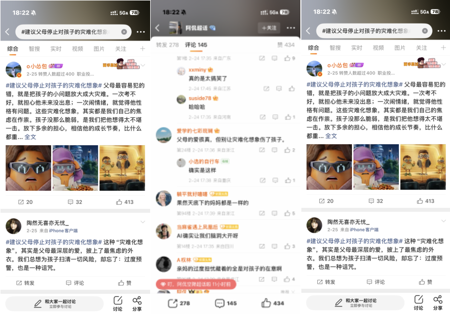 而#建议父母停止对孩子的灾难化想象#这个话题,更是一路攀升至微博热搜主榜TOP15。评论区里,网友们分享着自己的成长经历,展开了一场关于家庭沟通的深度讨论——动画只是引子,真正在发声的,是屏幕前的每一个普通人。