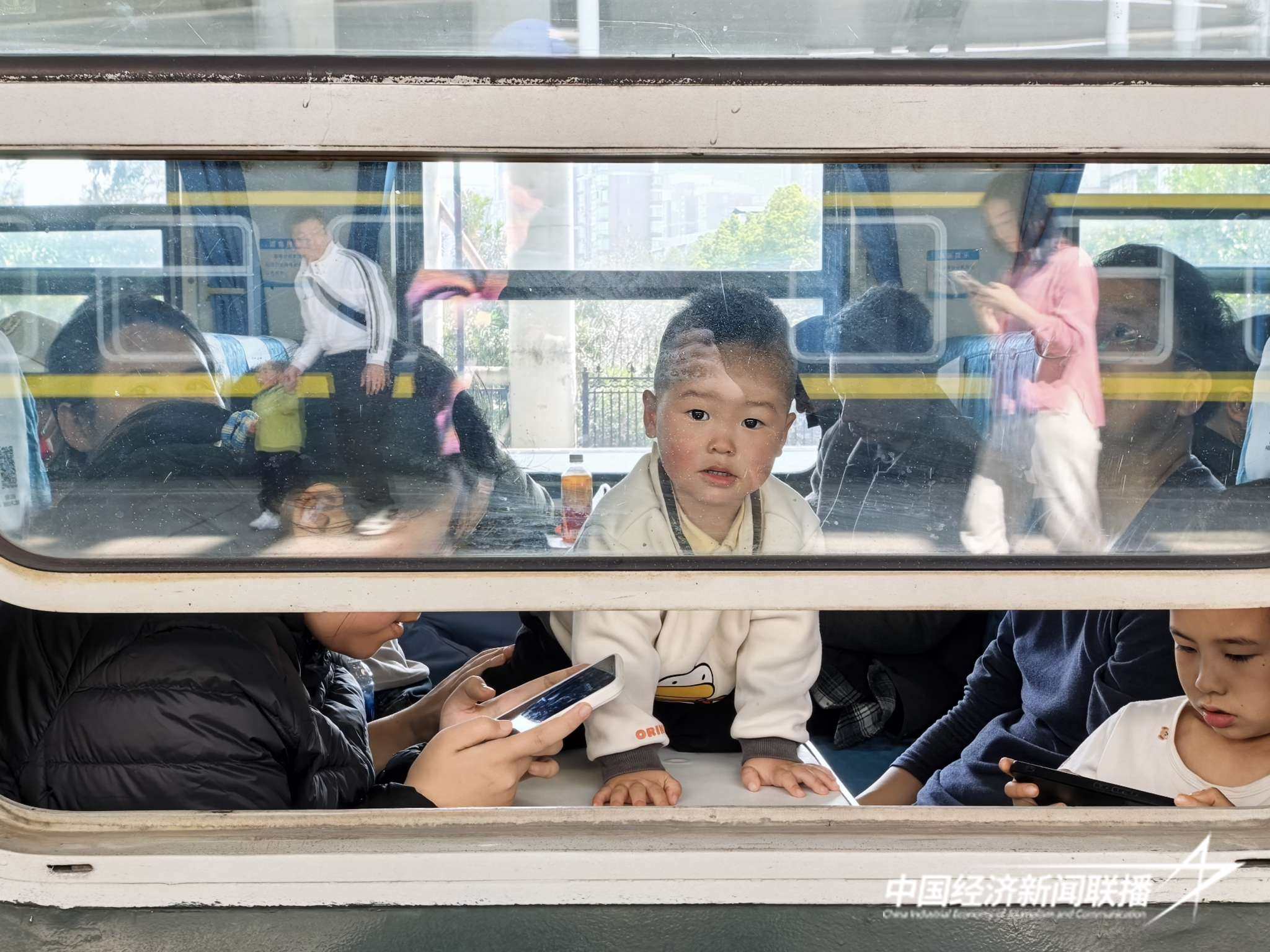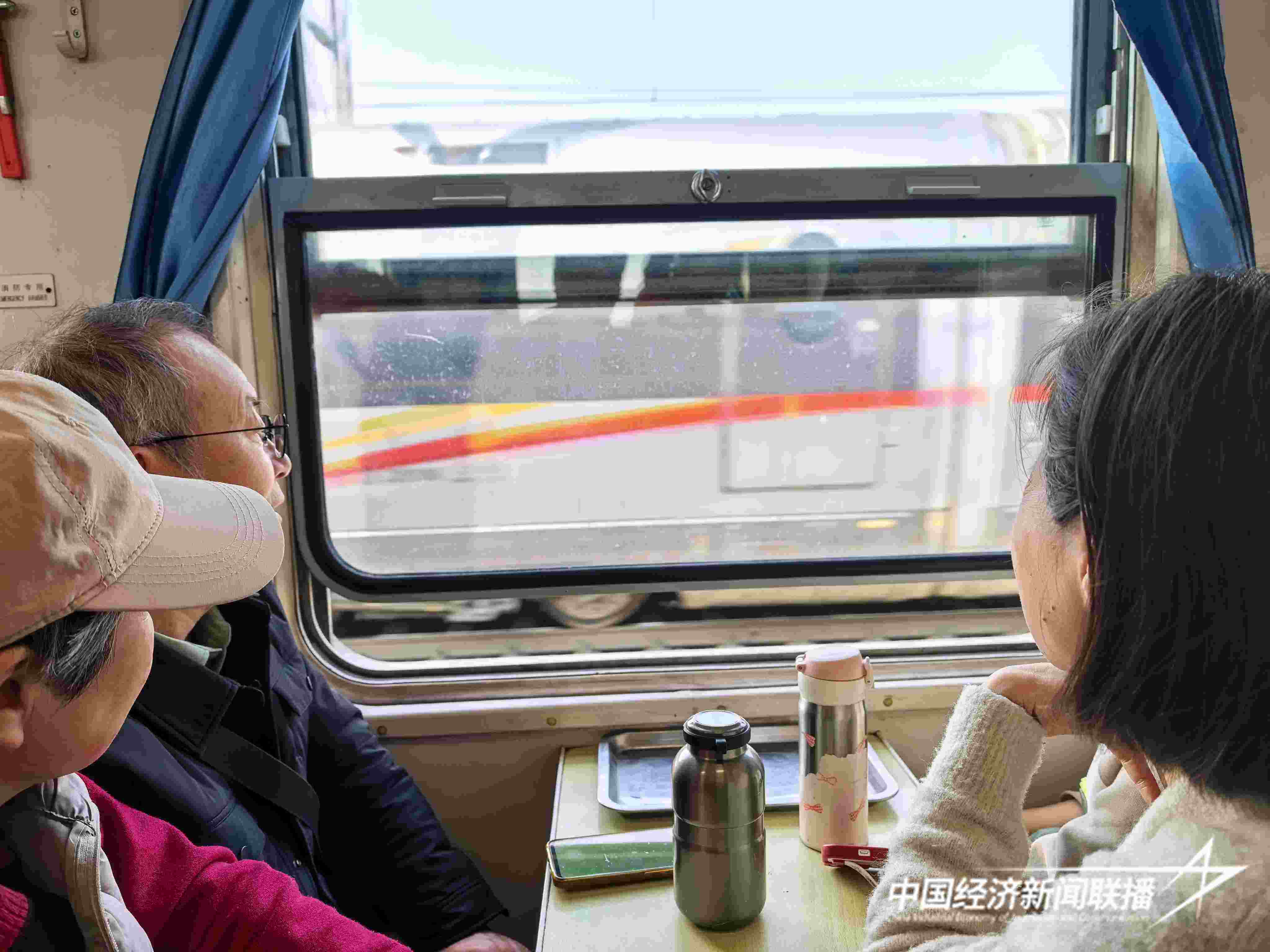 列车上,许多中老年旅客一边交谈着一边看向窗外略过的风景。仿佛在这老式的车厢里,他们回到了年轻时那激情燃烧的岁月。很多人或是与老伴同行,或是在子女陪伴下,更有带着孙子孙女全家前来体验“老火车”,在列车快速的运行中回忆着过往时光,讲述着年轻时的故事,感慨着时代的变迁和祖国的发展。