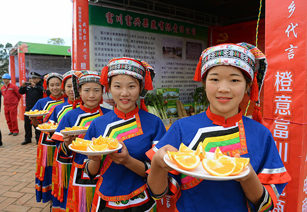 当日,广西富川瑶族自治县举办电商集市,集中展销该县种植的脐橙,市民和游客在现场选中后可通过手机下单,货物即可发往各地。近年来,富川运用“互联网+”思维,联合多家电商企业和电商平台,拓宽脐橙销路,构建“互联网+扶贫”格局。