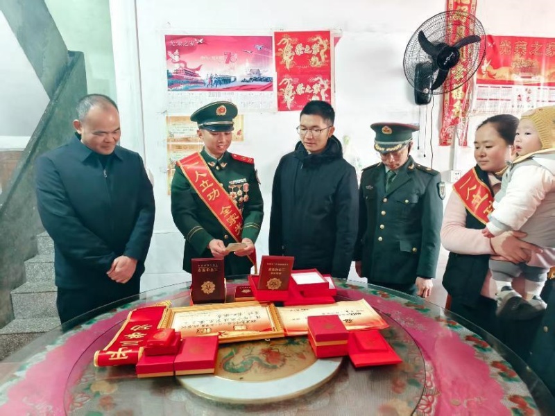 中经联播讯(马海彤 通讯员 涂奕凡 李裕湉 钟华 肖桂兰 陈萍 童家乾)2026年春节将至,捷报传家。近日,福建省龙岩市长汀县退役军人事务局联合县人武部及相关乡镇武装部、退役军人服务站,组成送喜报慰问小组,上门为荣立三等功和“四有”优秀士兵的现役军人赖珲、黄春水、吴庆文、袁慧彬、钟齐武、张泽勇、童小敏、赖建勇等8个家庭送上立功受奖喜报,向军属们致以热烈祝贺和新年问候。
