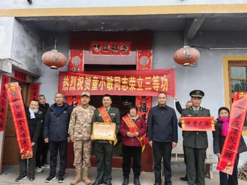 喜报送到家,尊崇暖军心。1月23日,县退役军人事务局联合县人武部、童坊镇党委将三等功喜报送到童小敏家中,在战备训练上,他如同“钢钉”一般,勇于拼搏进取,圆满完成年度演训任务,零差错处置各类情况。在各级组织的考核中,凭借过硬的军事素质,取得参考科目优良率95%以上的优异成绩。在服务官兵上,他始终坚持“基层至上、士兵第一”的服务理念,坚决贯彻上级决策指示,推进单位各项为基层办实事举措落地生根。