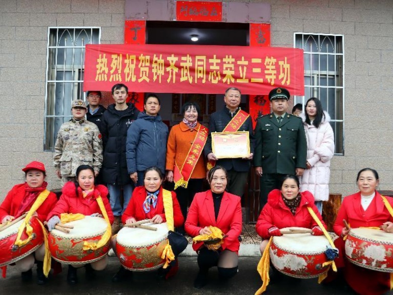 喜报传家门,荣光暖军属。1月22日,“送喜报小分队”敲锣打鼓走进了南山镇现役军人钟齐武的家中,将这份来自军营的荣耀精 准送达军属心坎。钟齐武自入伍以来,始终牢记父母和家乡人民的嘱托,扎根军营刻苦训练,参加过多次重大任务,曾获优秀军官4次,嘉奖4次,三等功1次,三级表彰1次。2025年在部队工作成绩突出,再次荣立三等功。