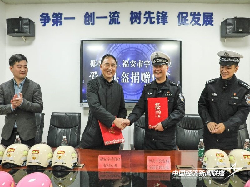 中经联播讯(马海彤 通讯员 林杰 李文福)为持续深化“一盔一带”安全守护行动,切实提升重点人群道路交通安全防护水平,椰树集团、宇星酒业爱心企业向交管大队无偿捐赠了1000顶爱心头盔,用实际行动为道路交通安全事业赋能助力。1月27日,福建省宁德市福安市公安局交管大队组织开展“警企携手共筑平安 爱心头盔共享安全”主题头盔捐赠仪式。