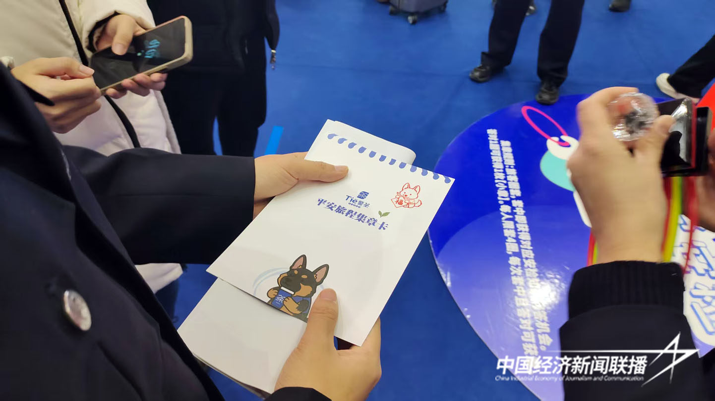 旅客参与热情高涨。在“反诈攻坚”区,旅客王先生答对题目获颁“送福章”,欣慰表示“孩子牢牢记住了‘不轻信陌生来电’的安全准则”;“套圈学安检”区,旅客李女士精准回答问题后获章,认为“寓教于乐的形式有效强化了出行安全意识”。地图打卡墙前,旅客合影留念并标注目的地,务工人员小张于“郑州站”定位后感慨:“铁路民警全程守护,归途倍感安心。”兑奖区秩序井然,旅客凭集章兑换“Tie警茶”、联名文创产品,旅客刘女士称赞“礼品兼具实用价值与纪念意义,彰显了公安服务的温度”。