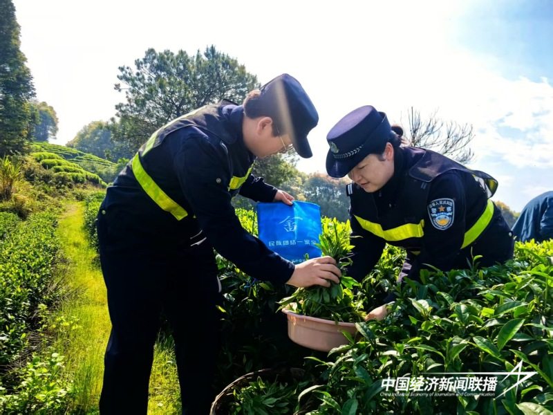中经联播讯(万相荣 应晓丹 通讯员张钰 李文福)春茶吐翠,茶香漫山,又到一年畲乡采茶春耕的黄金时节。福建福安市坂中畲族乡辖区内,汤洋村茶园层层叠翠,茶农们指尖轻捻采摘鲜嫩茶芽,田间地头满是丰收忙碌的喜悦景象。在这一派生机图景中,坂中派出所的“警察蓝”始终坚守辖区一线,以4.15全民国家安全教育日为契机,将平安守护、安全知识普及融入春茶采摘全流程,用藏蓝担当守护辖区茶园好“钱景”,筑牢乡村安全防线。