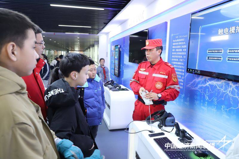 随后,师生们走进VR安全体验馆,开启本次研学的“沉浸式安全课堂”。依托先进的虚拟现实技术,体验馆精准还原事故常见场景。孩子们戴上VR设备,“亲历”火灾逃生、交通事故、防触电等危险情境,在虚拟场景中学习弯腰捂鼻、有序撤离、正确避险的实用技能 。不同于传统说教式安全教育,这种“身临其境”的体验让安全知识入脑入心,帮助孩子们掌握应急处置方法,筑牢自我保护的安全防线。现场师生互动热烈,大家纷纷表示,这种直观、有趣的体验式教学,比课堂讲解更具感染力,真正实现“在体验中学会安全、在实践中增强意识”。