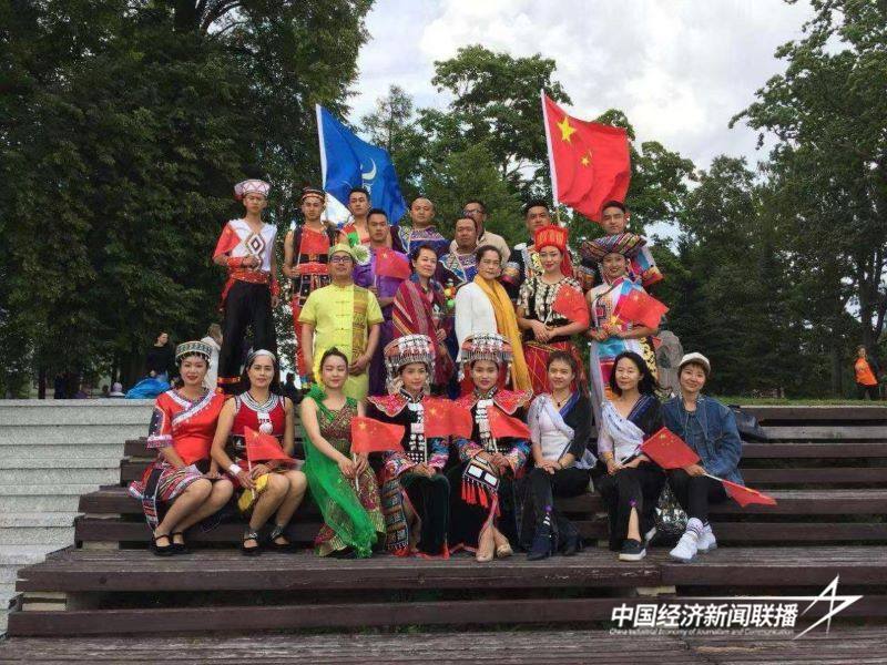 在爱沙尼亚沃鲁民俗艺术节的舞台上,云南金小凤艺术团的演员们身着绚丽多彩的云南少数民族服饰,伴着欢快的民乐载歌载舞。这场演出让仅有1.2万人口的沃鲁小镇感受到了云南民族文化的魅力。
