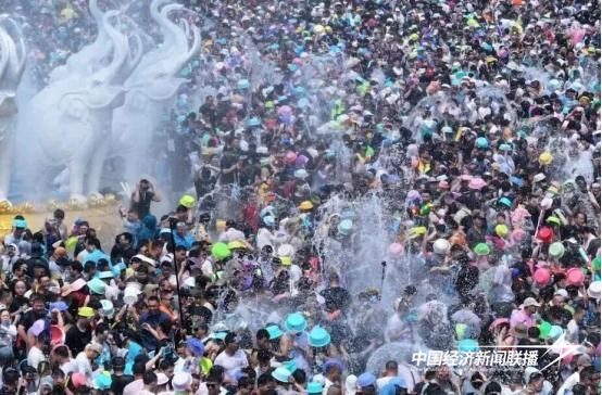 西双版纳的泼水节同样成为各民族交往交流交融的平台。4月15日泼水狂欢活动中,数万名中外嘉宾、游客和当地各族群众相互泼洒圣洁祝福的水。在融创茂周边,旅居游客与本地居民手持各式“武器”开展“水战”,水花飞溅之处,不分你我,只有祝福。对于旅居在此的“新市民”而言,西双版纳不再只是他乡的风景,而是亲身融入的第二故乡。