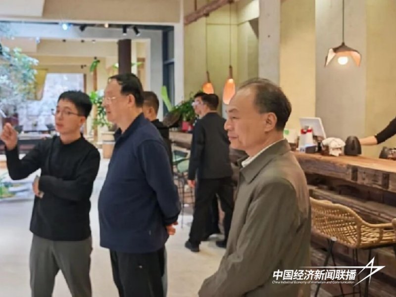 ▲刘熹陪同省政协调研组在“芝然界”调研
