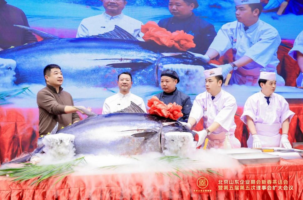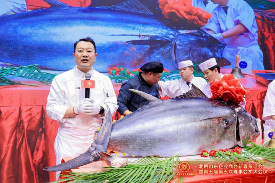 这条蓝鳍金枪鱼,承载着多重战略意义:它是心海农业集团深耕远洋渔业、掌控稀缺深海资源的直接见证,彰显了企业响应国家“建设蓝色粮仓”号召,向深海要食物、要资源的坚定执行力;它是蓝鳍雅集“以鱼为媒”链接产业生态的核心符号,将遥远的深海战略转化为可感知、可体验的高端消费场景;它更是鲁商文化与蓝色经济的跨界融合载体,让来自齐鲁大地的企业家们在品鉴深海珍馐的同时,直观感受海洋产业的巨大潜力。现场嘉宾品尝着鲜美的金枪鱼料理,畅谈合作机遇,深海资源与鲁商资本的碰撞,在舌尖上催生着产业共荣的无限可能。