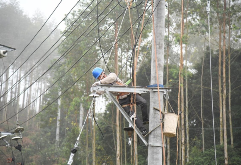 中经联播讯(林建辉 马海彤 通讯员 方为生 方诗淇)1月21日,在福建省漳州市云霄县马铺边远山区乌螺村,一支电力施工队伍忙碌着拆除水路塘旧配变台架上的导线、横担、配变等,并加紧对新建的水路塘配变进行导线架设、电源T接等作业。