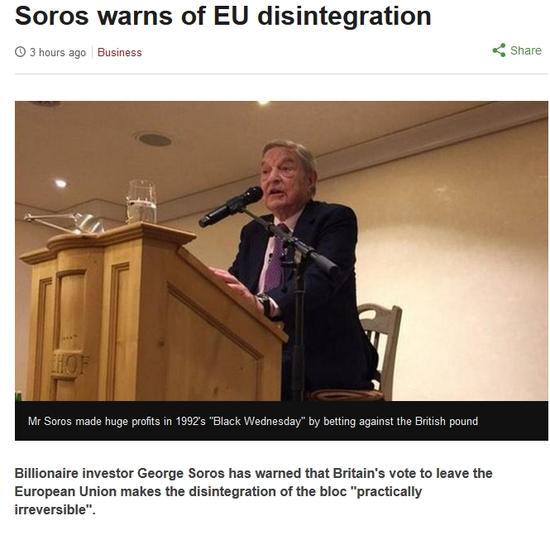 索罗斯表示,“我坚信,随英国退欧的恶果在未来几周逐步显现,越来越多的人会加入我们。”