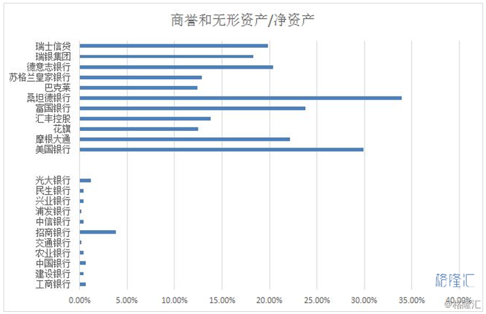 欧美大型银行集团,基本上是历史上多次并购形成的,其商誉与无形资产占净资产比例相当高。