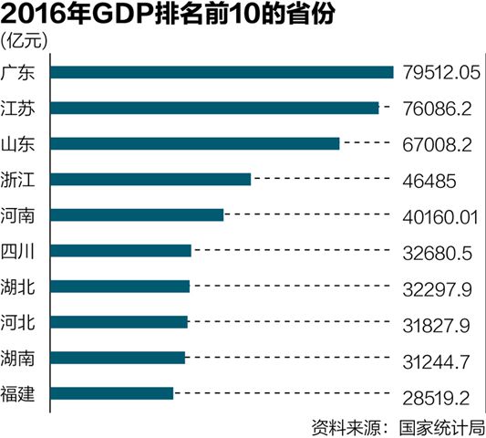 国家统计局于22日发布了31个省份2016年的地区生产总值(GDP)数据。