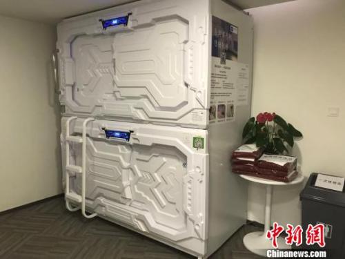 资料图:共享睡眠舱门外形科技感十足,酷似宇宙太空舱。王子涛 摄