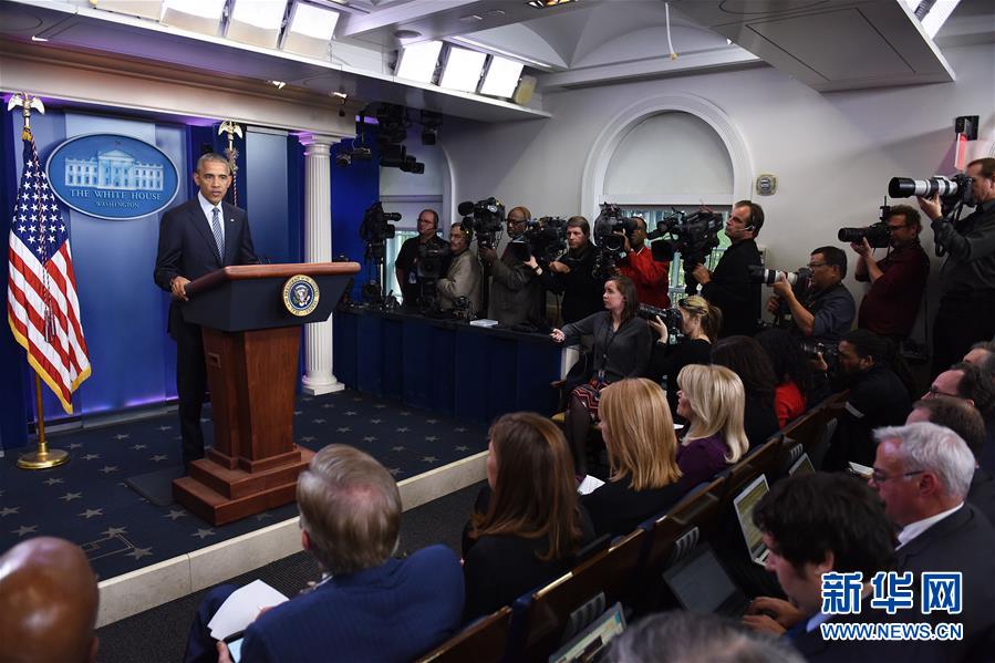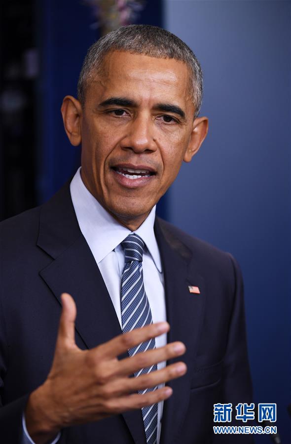 11月14日,美国总统奥巴马在华盛顿白宫举行记者会。奥巴马在记者会上说,美国当选总统特朗普已表示,将继续履行美国对北约和跨大西洋盟友关系的承诺。 新华社记者 殷博古 摄