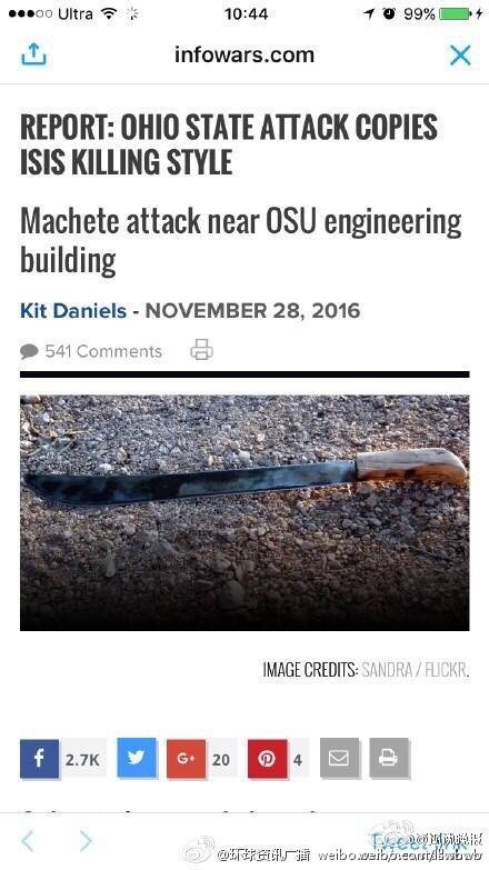事发时嫌疑人开车碾压学生,并从车内窜出,挥刀向人行道上的路人行凶,而行凶地点旁边就是事发附近就是俄亥俄州立大学材料科学和机械专业的教学楼。据称,该嫌犯手里拿着一把“切肉刀”。