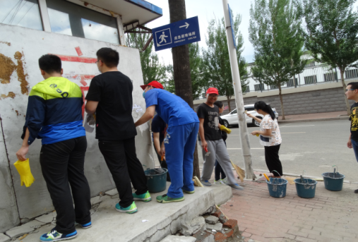 劳动最光荣,哈工程大学青年志愿者、社区志愿者、党员志愿者手持铁锹、扫帚、夹子、铲子、涂料等劳动工具,对居民庭院和楼道环境进行清理、净化。青年志愿者们非常认真,王哲、陈徐航、邓日熹等大学生志愿者都很认真,先清楼道小广告、粉刷黑体字、在对楼道进行清扫。大家弄得满身是灰、小脸跟小花猫似的,但是大家看到了干净的楼道、整洁的庭院,美丽的小区,得到了过往的居民称赞,个个脸上洋溢着奉献快乐的笑容。大家一下午清理了平湖街、新江桥街4栋、4个庭院。对外墙体52处黑体字进行了粉刷,小广告清理了280余处。