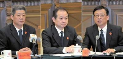 从左至右依次为:最高法副院长李少平、最高法司改办主任胡仕浩、最高法新闻发言人孙军工。最高法供图