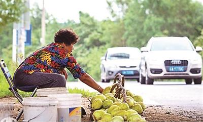 在路边卖香瓜,只为积攒一点儿治病的钱