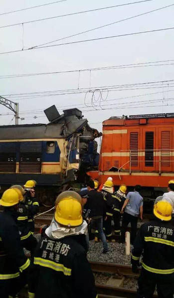 2016年4月5日下午5点左右,广西南宁铁路局钦防铁路防城港车站北头11号道岔上,一个单机与另一个拖挂6节车厢的火车头相撞,造成车内2名司机被困。
